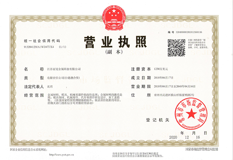 江蘇富冠金屬科技有限公司(以下簡(jiǎn)稱:“公司”)成立于2018年4月,隸屬于鑫昌泰集團(tuán),是常州市經(jīng)開(kāi)區(qū)招商引資的重點(diǎn)外資企業(yè),注冊(cè)資本1230萬(wàn)美元,座落于常州市經(jīng)開(kāi)區(qū)橫山橋智能裝備產(chǎn)業(yè)園,占地面積22762.8平方米,員工總數(shù)100人。公司主要經(jīng)營(yíng):金屬材料、模具、機(jī)械零部件的改性處理;金屬材料的激光處理;模具鋼材、機(jī)械零件、汽車零部件研發(fā)設(shè)計(jì)、加工及銷售。并具有真空淬火、普通淬火、調(diào)質(zhì)、去應(yīng)力回......